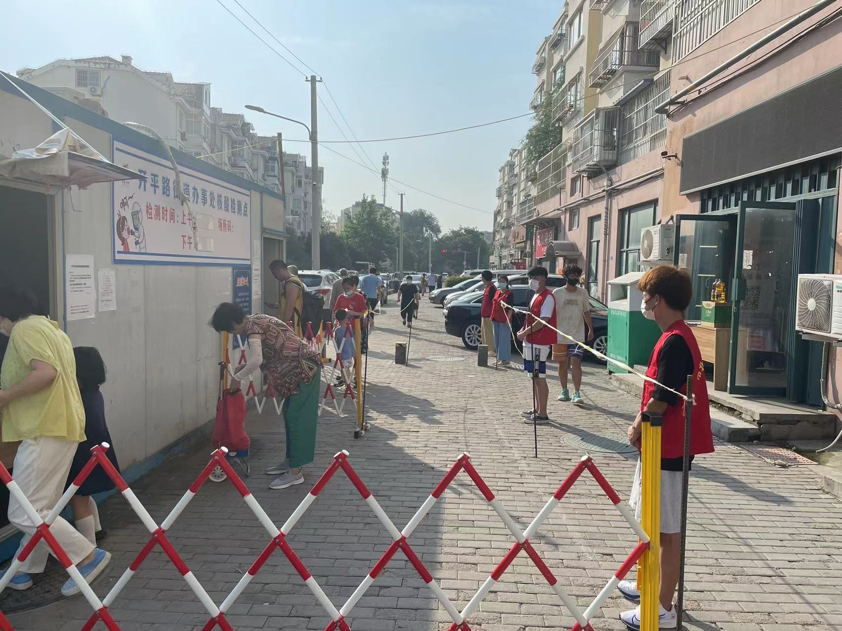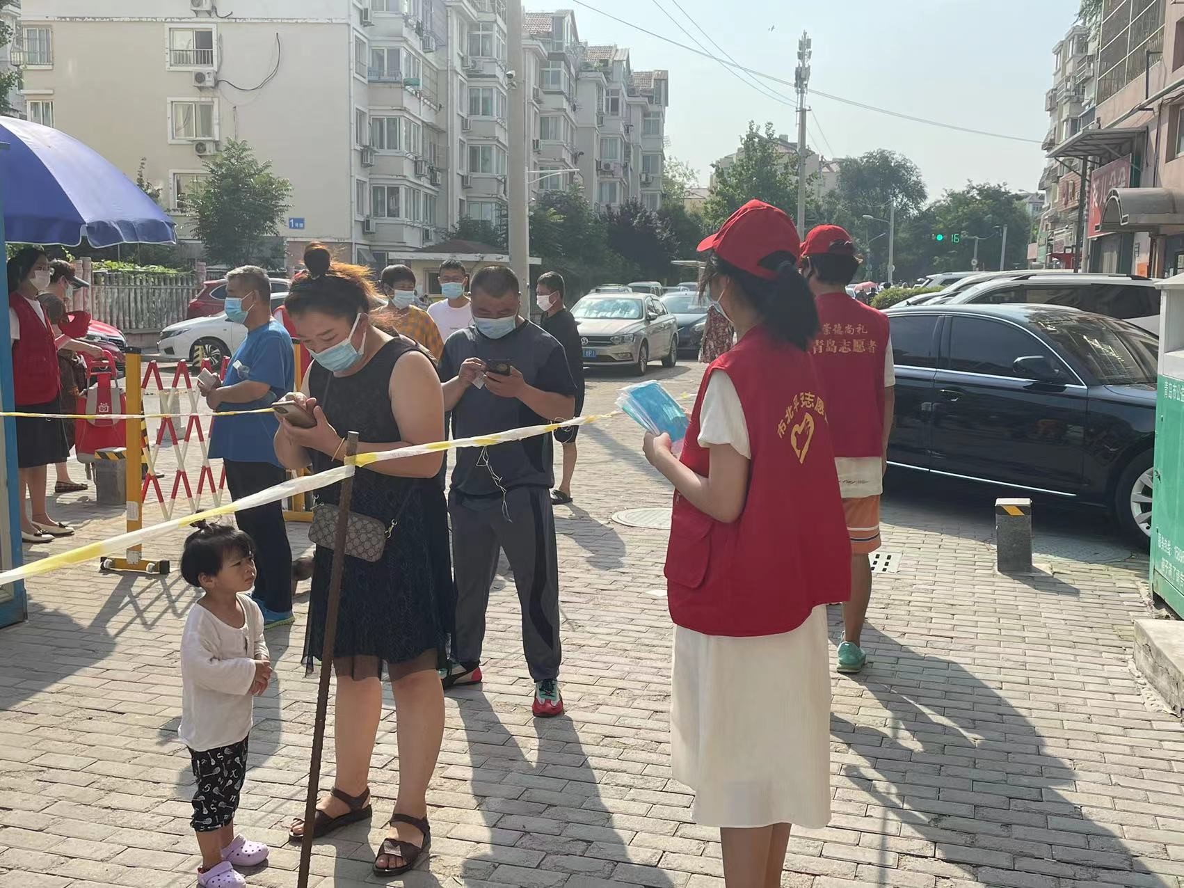 活动过程中,志愿者们参与了社区核酸检测工作,规范穿着防护服,全程佩戴口罩和面罩,维持现场秩序;前来采样的居民按照社区通知提示要求做好个人防护,在志愿者们的引导下保持“两米线”距离,依次进行体温检测、信息登记、身份证消毒、咽拭子采样,采样后迅速从出口离开,整个过程有条不紊、井然有序,志愿者们的辛勤表现也得到了社区工作者们的一致认可。