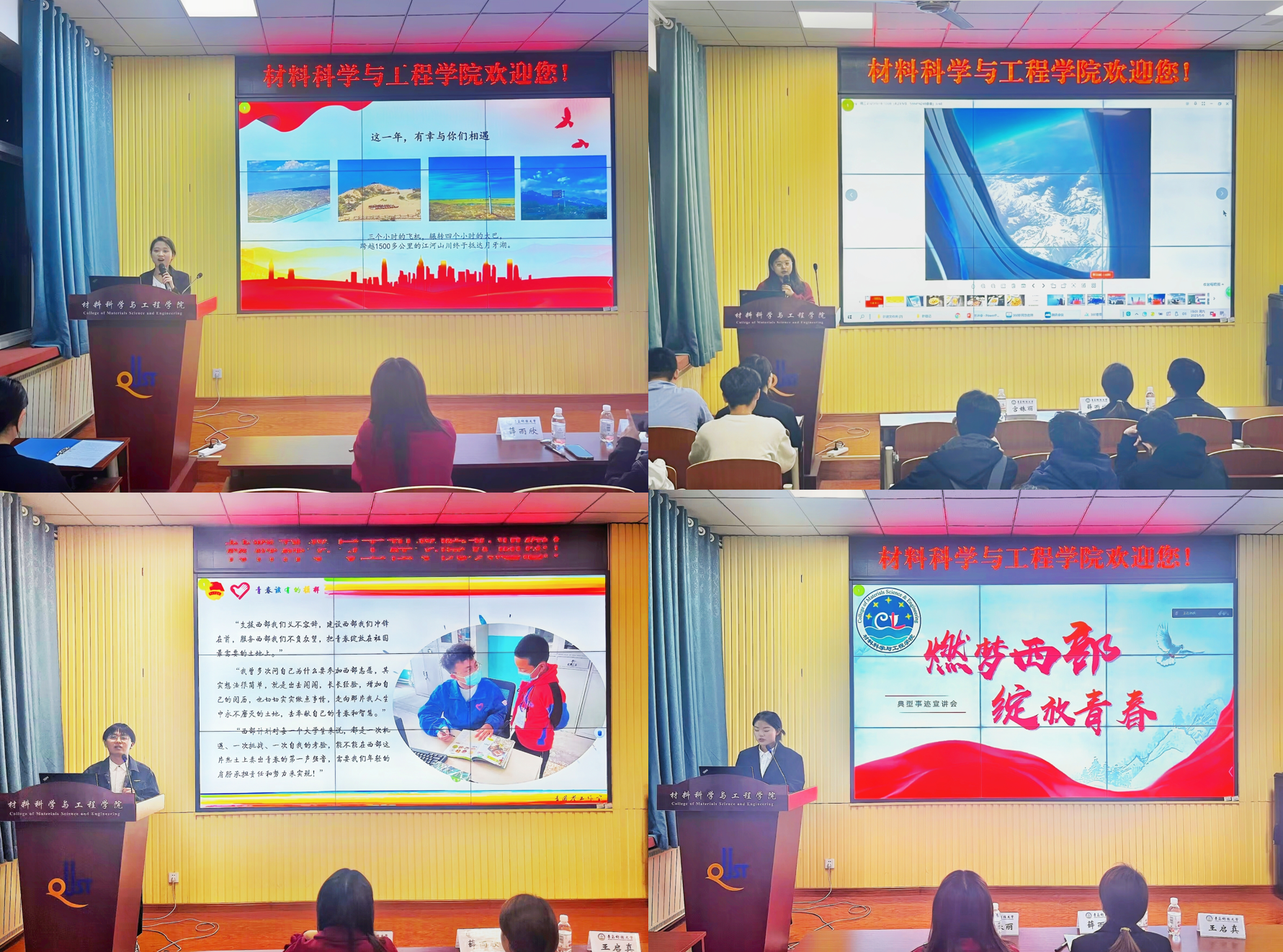 青春奋斗正当时,人生理想在西部。材料学院团委通过举办此次“西部计划”典型事迹宣讲会,号召广大青年学子们到西部去,到基层去,到祖国和人民最需要的地方去,将青春故事书写在西部广袤的大地上,用脚步丈量大好河山,用奋斗谱写青春年华。