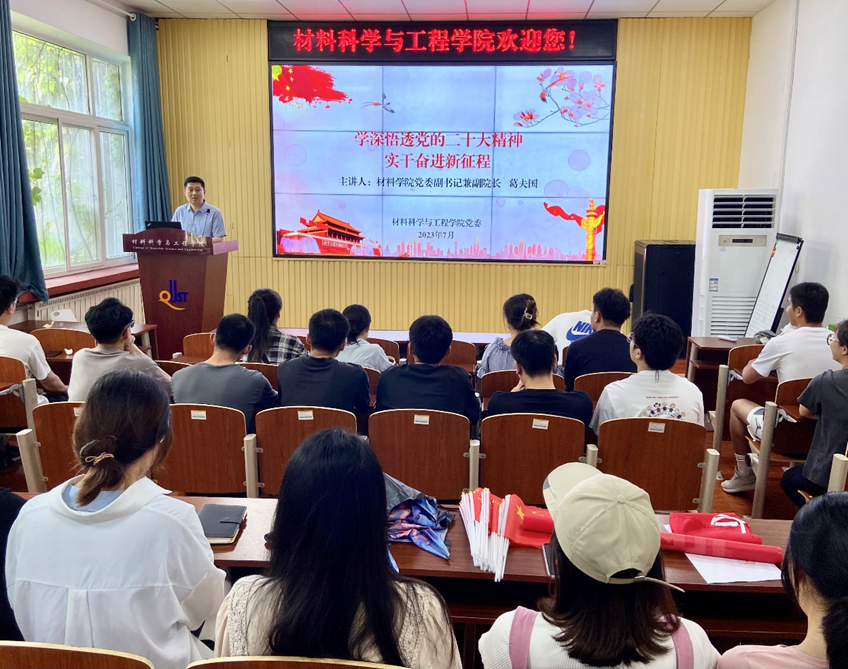 为深入推进学习贯彻习近平新时代中国特色社会主义思想主题教育,庆祝建党102周年,2023年7月5日上午,材料学院党委副书记兼副院长葛夫国在学院楼101报告厅为全体研究生党员讲授主题教育专题党课。