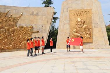 在《共产党宣言》陈列馆的门口,团队党员面对鲜红的党旗,重温入党誓词,在铿锵的誓言中升华情感、坚定信仰,传承红色基因,赓续红色血脉。