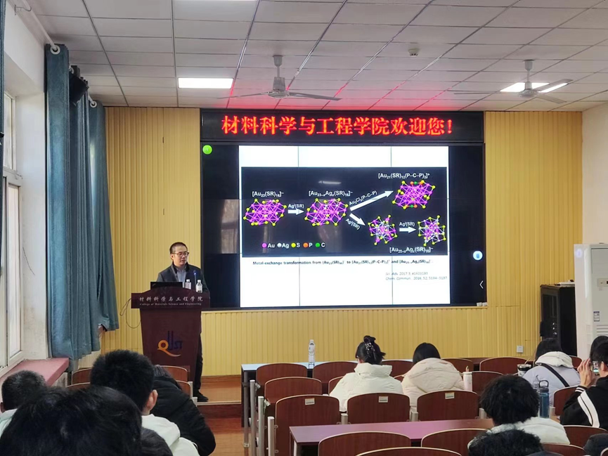 汪恕欣教授在合金纳米团簇的合成、结构以及光学、催化、生物传感等领域得研究有极高的学术造诣,近年来发表高水平论文30余篇。讲座中汪恕欣教授以发问的方式切入,围绕求学经历、阅读文献方法、课题研究和寄语祝愿分享了个人成长历程和科研经历,在阅读文献、课题研究、科研能力提升等方面传授了自己的经验做法,并鼓励青年学生科学探索要勇于探索,勇于创新。在座学生纷纷表示深受启发,在交流互动环节,同学们踊跃发言,向汪教授请教自己遇到的科研难题和学业困惑,汪教授逐一耐心解答。