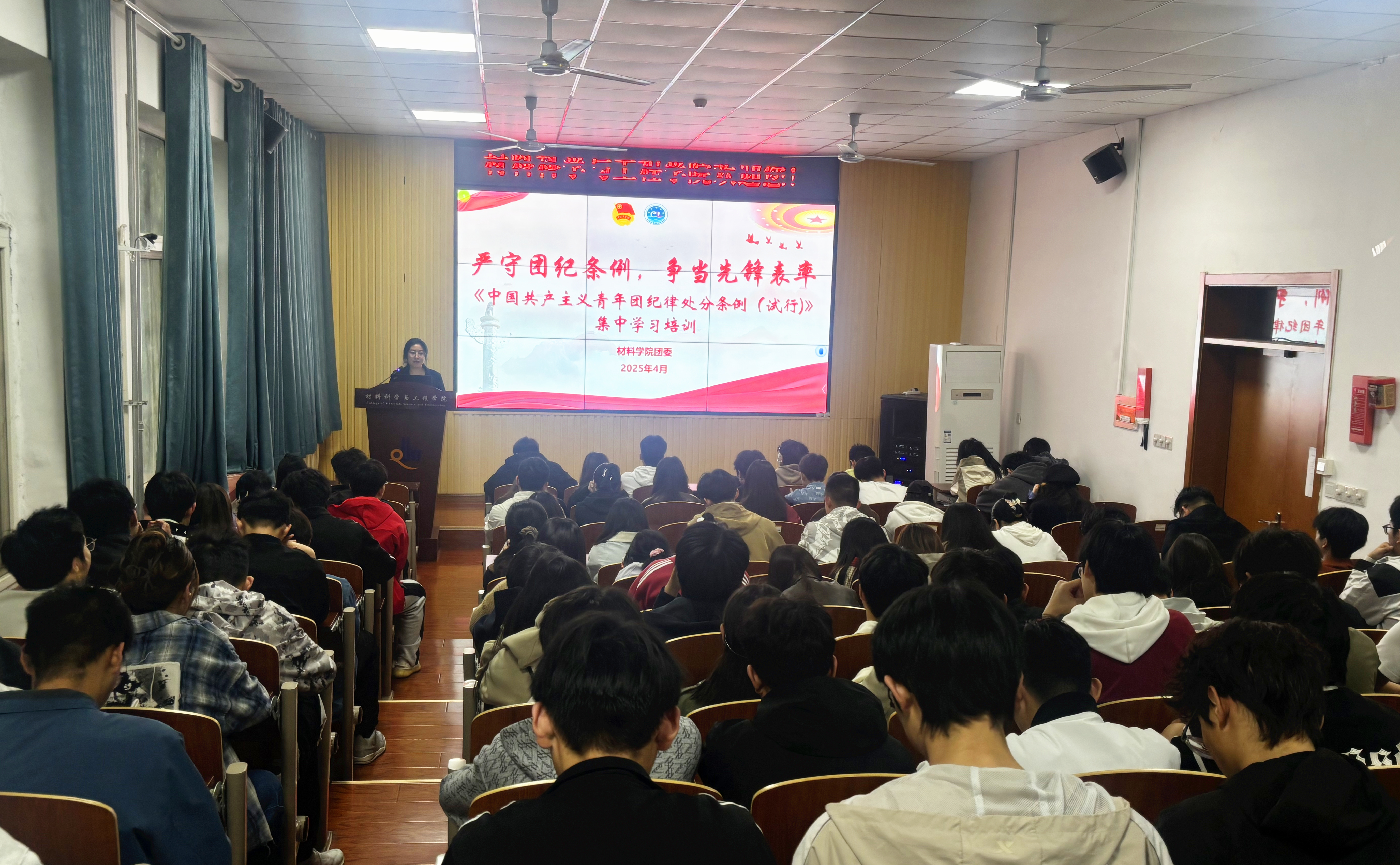 为进一步增强团员纪律意识,强化团员责任担当,4月21日,材料学院团委于材料楼101报告厅开展“严守团纪条例,争当先锋表率”主题团课,团课由材料学院团委副书记付文静讲授,全体2025年春季学期入团积极分子、各年级团支部书记参加培训。