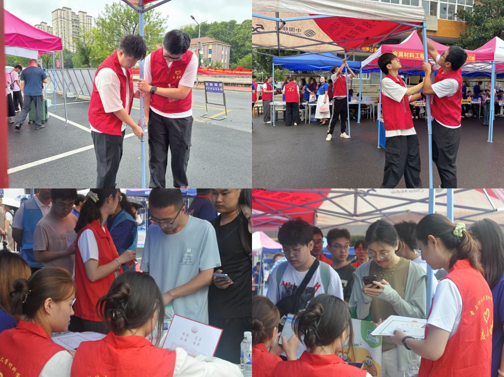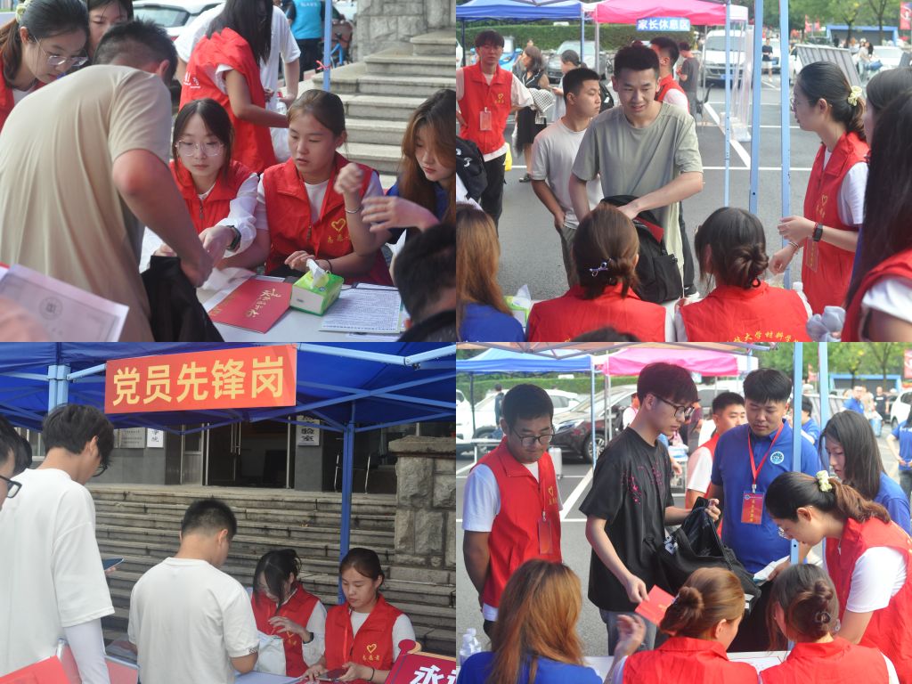 迎新现场,党员师生身着红色马甲亮明身份,在各岗位上践行初心使命。研究生党员们化身服务先锋,承担行李转运、手续办理等工作。