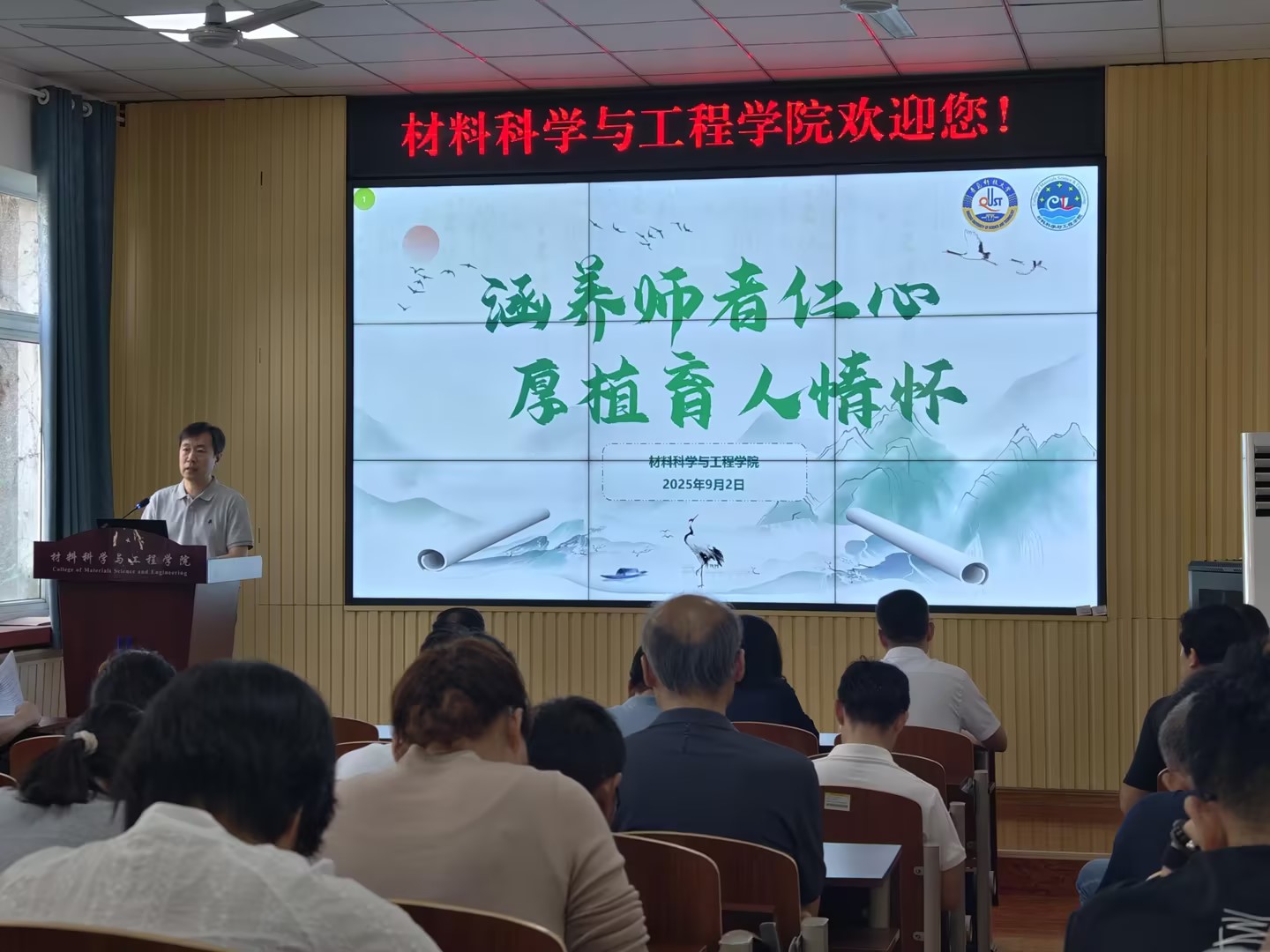 为持续加强新时代教师队伍建设,筑牢立德树人思想根基,9月2日下午,材料科学与工程学院在学院报告厅召开师德师风建设专题会议。学院全体教职工齐聚一堂,围绕“涵养师者仁心,厚植育人情怀”主题,开展集中学习与工作部署。