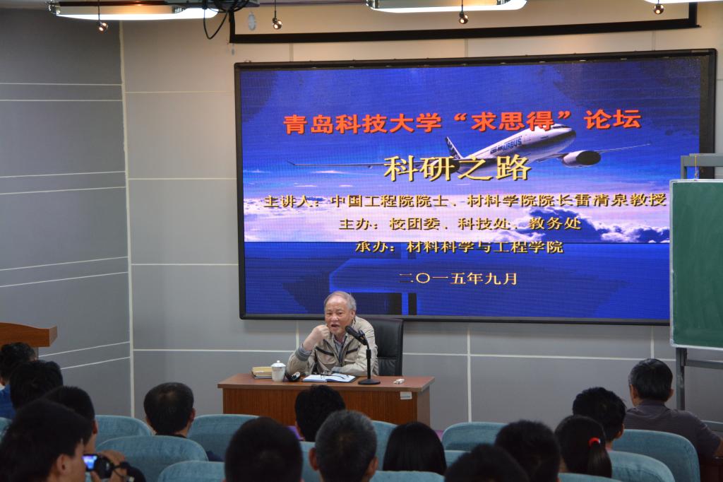 9月15日,中国工程院院士、材料学院院长雷清泉教授为师生做了题为“科研之路”的专题报告。此次论坛在四方校区高分子学院楼学术报告厅举行,由校团委、科技处、教务处主办,材料学院承办。材料学院常务副院长杜芳林主持论坛,相关部门负责人和材料学院党政领导及师生代表参加论坛。