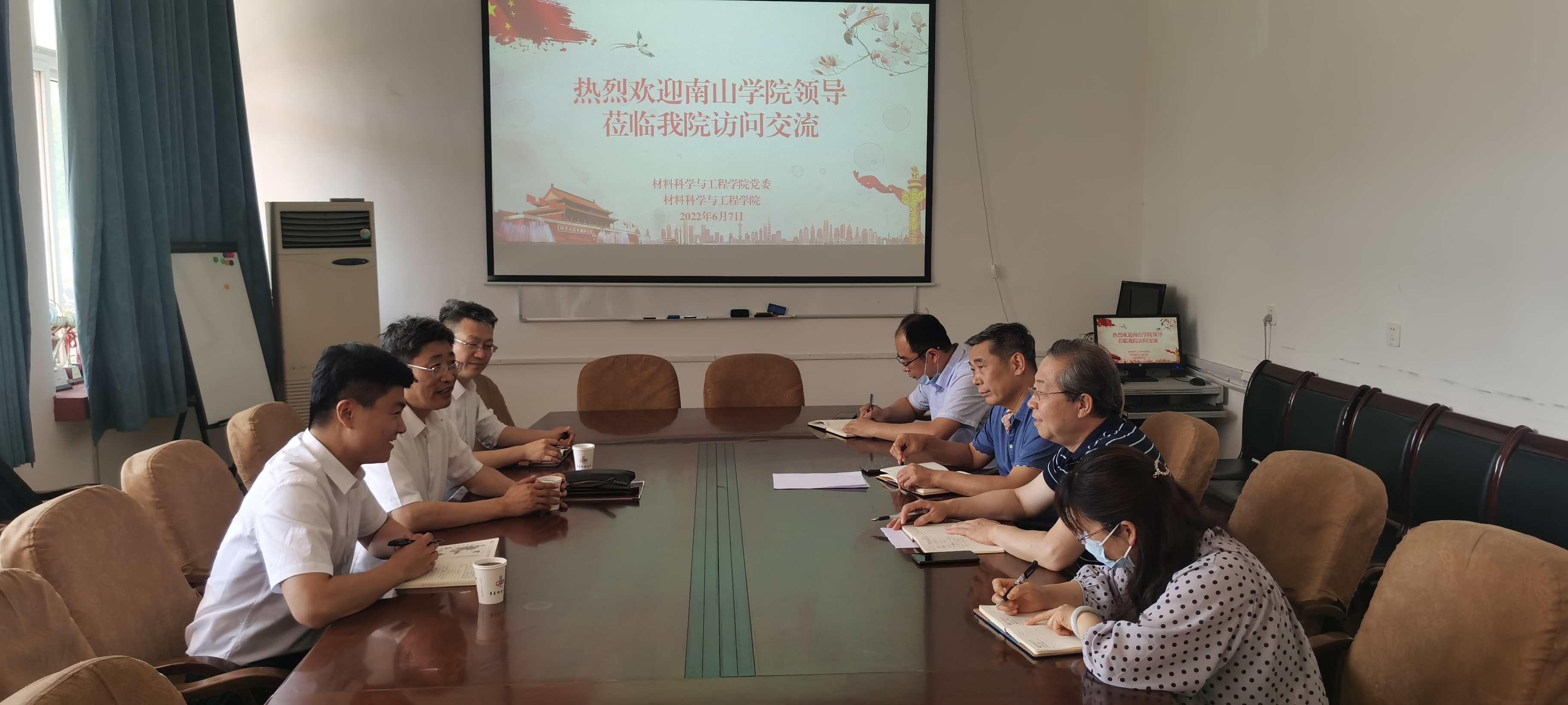 6月7日下午,烟台南山学院副校长徐惠忠一行来学院访问交流,并在学院203会议室举行座谈。烟台南山学院发展规划与学科建设处处长栾京滨、南山集团铝业人事部王贵琛经理、学院党委书记杜芳林、院长谢广文、副院长于薛刚等出席座谈会。