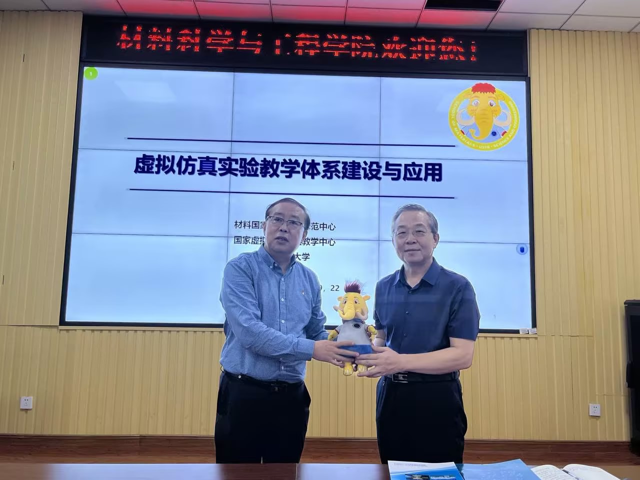 会后,孙建林教授向材料学院赠送由北京科技大学材料科学与工程学院自行设计的吉祥物“金象”,谢广文院长代表学院接受了吉祥物。