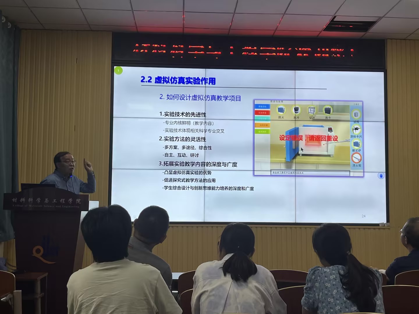 9月22日下午,学院邀请北京科技大学材料科学与工程学院二级教授、博士生导师孙建林教授进行教学研讨交流,并作了题为《虚拟仿真实验教学体系建设与应用》的专题报告。学院相关教师参加了报告会,报告由学院院长谢广文主持。