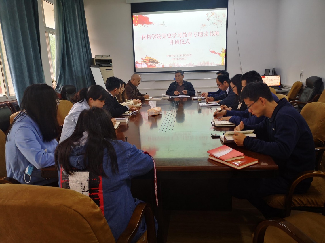 5月11日下午,材料学院党史学习教育专题读书班开班仪式在学院楼203会议室举行,学院党委书记杜芳林主持。